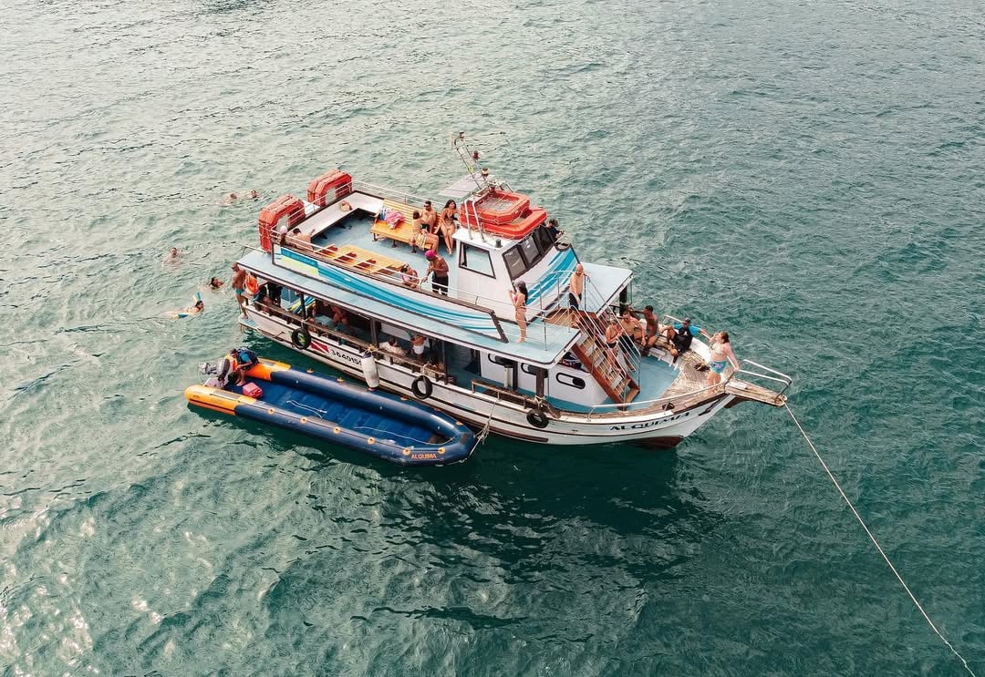 2. O desembarque nas praias é feito em botes de apoio com uso de coletes salva-vidas, não sendo necessário saber nadar para descer nas praias!