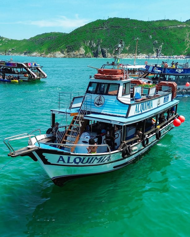 🛥 Embarcamos no Porto da Praia dos Anjos em nosso barco parceiro.